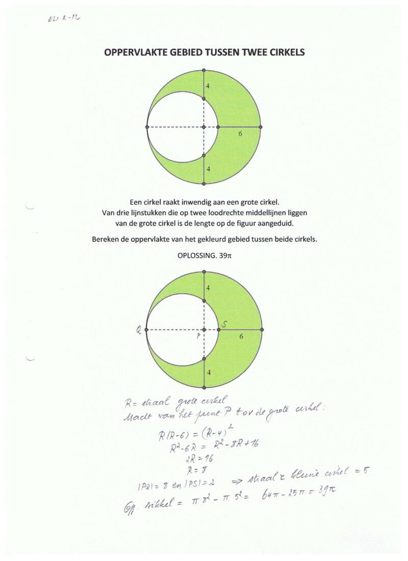 OPGAVE 12. Oppervlakte gebied tussen twee cirkels