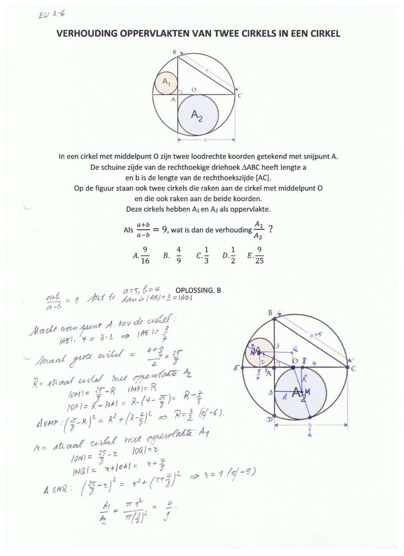 OPGAVE 6. Verhouding oppervlakten twee cirkels in een cirkel